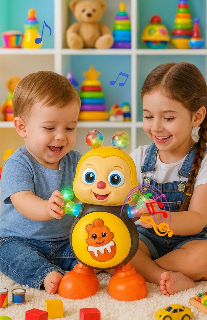 Hecha con materiales seguros y duraderos, esta abeja danzante es perfecta para regalar y disfrutar en familia. ¡Un juguete lleno de ritmo, alegría y brillo que hará sonreír a todos! 🐝✨