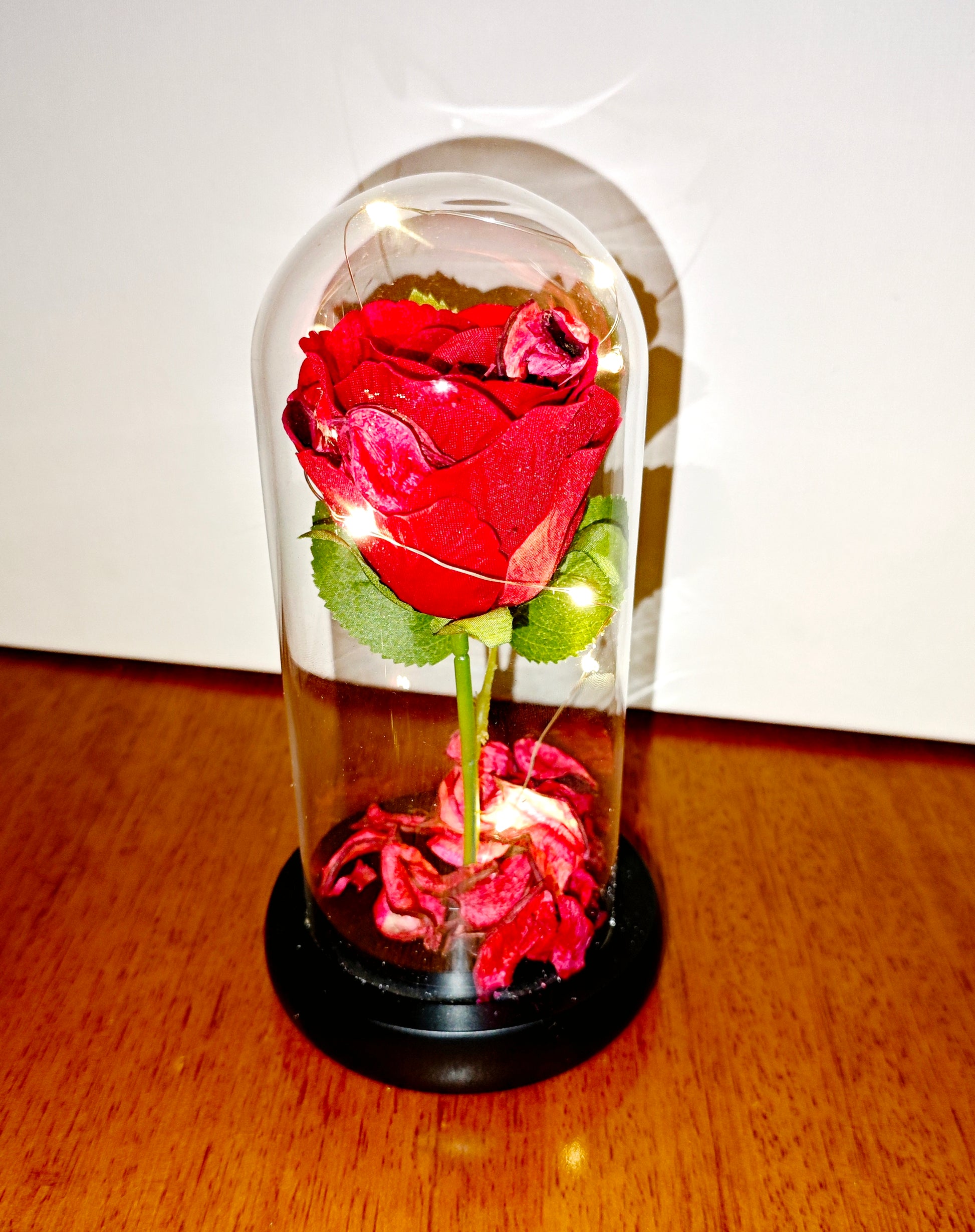 La Rosa Eterno capsulado es exactamente eso: una manifestación de cariño y amor que permanece protegida dentro de una cúpula de vidrio con luces LED, se transforma en un elemento decorativo singular que realza cualquier espacio.